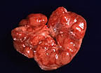 Gross Pathology: The left kidney contained a red and white mottled cystic mass measuring 4.0 cm in diameter. The right kidney contained a white cystic nodule in the cortex.