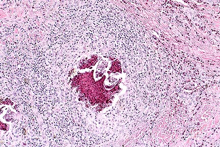 due to Salmonella arizona in a sheep. (HE, 400X, 54K).