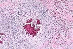 Differential diagnosis also should include neoplasia such as sarcoid or squamous cell carcinoma as well as exuberant granulation tissue, fungal infection, and pythiosis. Cutaneous habronemiasis is induced by larvae of H. muscae, H. microstoma or Draschia megastoma at cutaneous and mucocutaneous sites. The larvae are transmitted to these sites by flies. Traditional sites for dermal reactions to occur are the ocular conjunctiva and the prepuce of the stallion. Histologically, aggregates of eosinophils, epithelioid macrophages and foreign-body giant cells typically react to the presence of Habronema larvae. Larvae or their remnants may be found embedded in some inflammatory reactions.