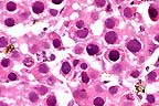 liver of a bearded dragon. Almost every is karyomegalic as the