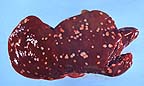 History: This steer from a small farm died while being transported to a diagnostic laboratory. The owner said the animal had suddenly stopped eating and had become lethargic the day before. The only significant gross lesion was a pale and extremely firm liver.