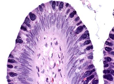 Laboratory Results: CBC ( 4 weeks ante-mortem): PCV = 21%, WBC = 1500 cells/ l; Intestinal contents, fungal culture: Small numbers ofTrichosporon beigelii, Aspergillus clavatus; Salmonella culture negative, fecal floatation negative; IFA for Giardia and Cryptosporidium negative.