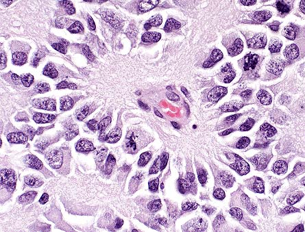 characteristic of ependymoma. (HE, 400X, 66K)