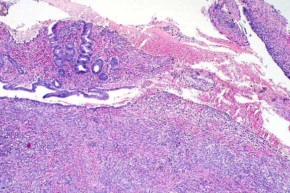 History: The dog resided in St. Thomas, Virgin Islands. The animal was examined for chronic bloody diarrhea which did not respond to antibiotics. Fecal examination was negative. Tissue samples of the descending colon were collected during exploratory celiotomy.