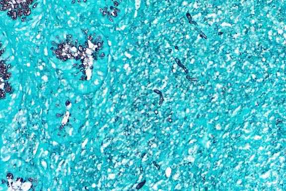 hyphae. Examination of Grocott's methenamine silver-stained sections