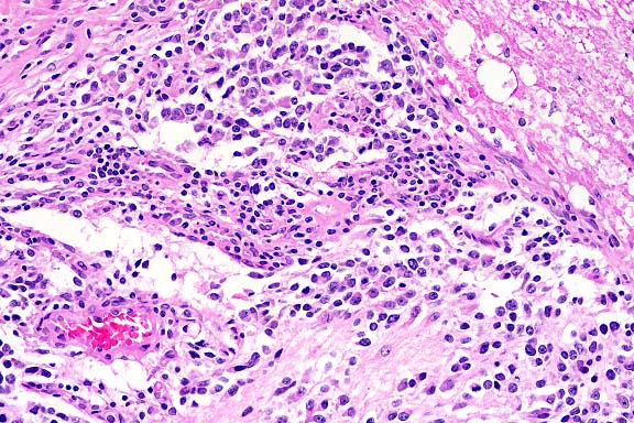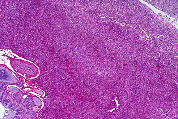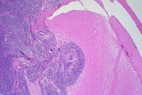 tumor in this dog is fairly well-demarcated. The neoplastic neuroglial