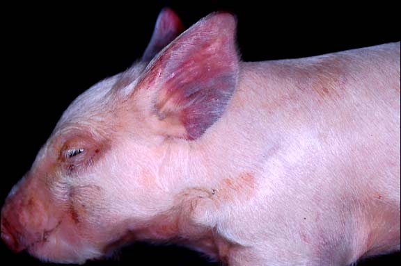 Pigs with pink to red skin lesions usually recover, while those