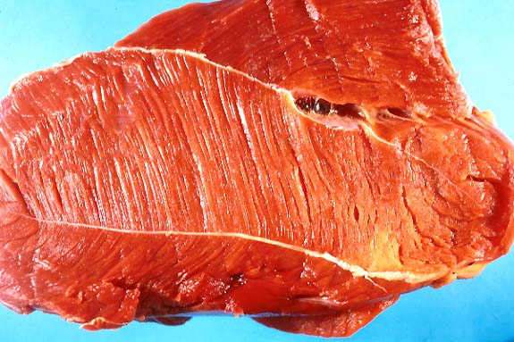 the skin. The submitted section of muscle from the leg is not
