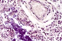 blood vessels. The 40x view shows the thrombus and vessel wall