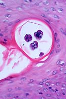 walls are disrupted by neutrophils and macrophages. Some skeletal