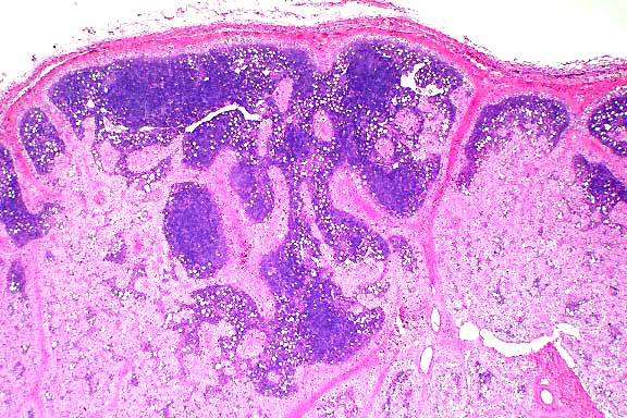round cells. Neoplastic cells multifocally occur within Virchow-Robins