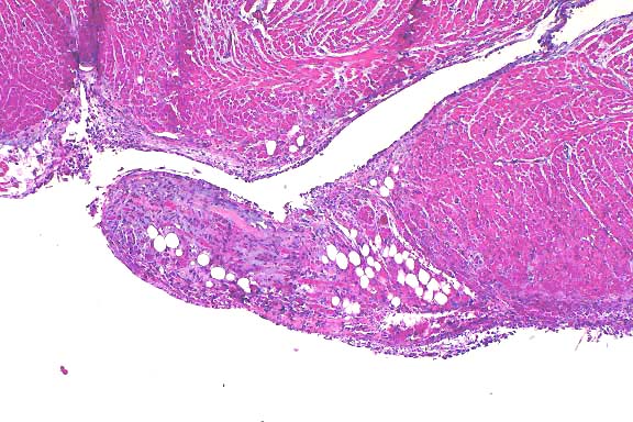 tissue was evident on the dorsal aspect of the medulla oblongata,