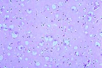 with sparing of the neuronal perikarya in the thalamus, and mild
