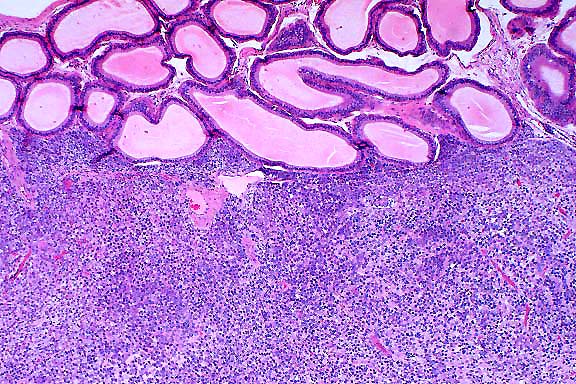 lined adipose tissue, there are numerous irregularly sized nodules
