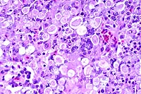 cells bearing pale granular, often vacuolated cells with oval