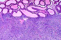 is an expansile, infiltrative mass consisting of sheets of polygonal