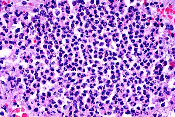 - Case 17-4. Spleen. The white pulp is expanded by similar