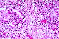 but no mural fibrinoid necrosis. At prosection, the fixed right