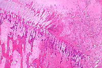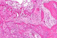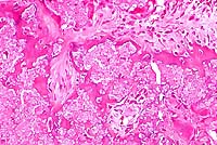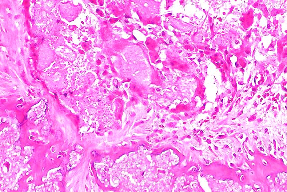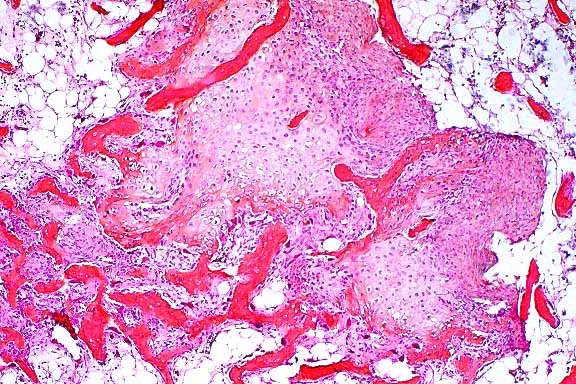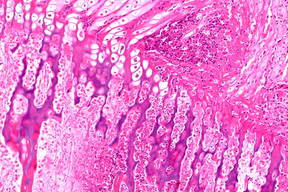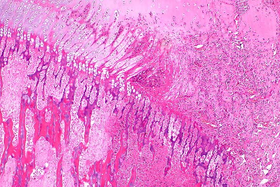 endochondral bone partly replaced by granular mineralized debris