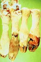 variable amounts of dry gangrene affecting only the hoof, hoof