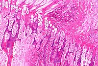 frequently hypereosinophilic, and there is karyolysis and loss
