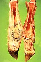 the hooves. Bony sequestra in the distal metacarpus and distal