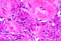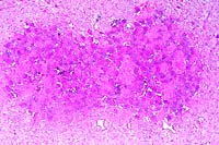 accumulations of amorphous lightly basophilic material which