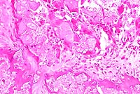 Within the basophilic material, hemorrhage is occasionally seen,