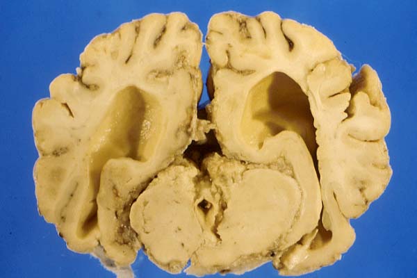 ventricles (internal hydrocephalus). The fixed brain was sent