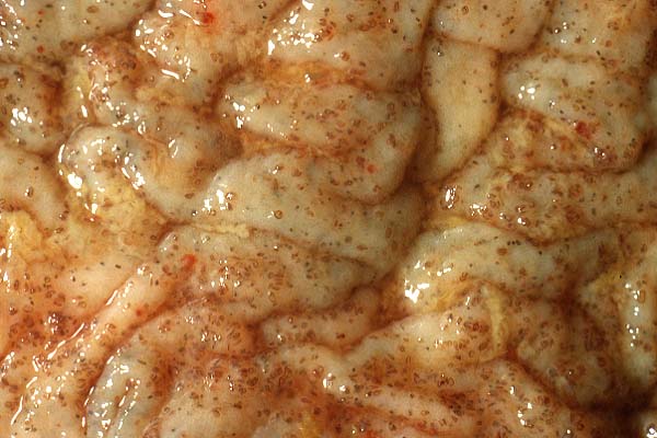 could be detected. The mucosal nodules consisted of larvae residing