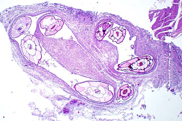 significance. The larval stages (L3) migrate into the deep mucosa