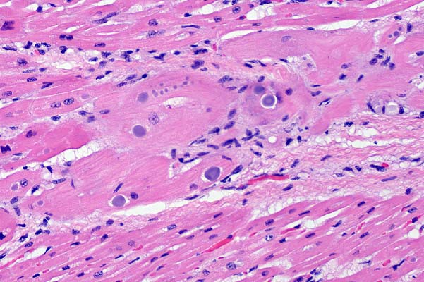 and Neospora caninum. Candida spp. can be identified in tissue