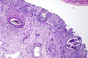 - Case 28-1. Colon. Multifocally expanding the mucosa,