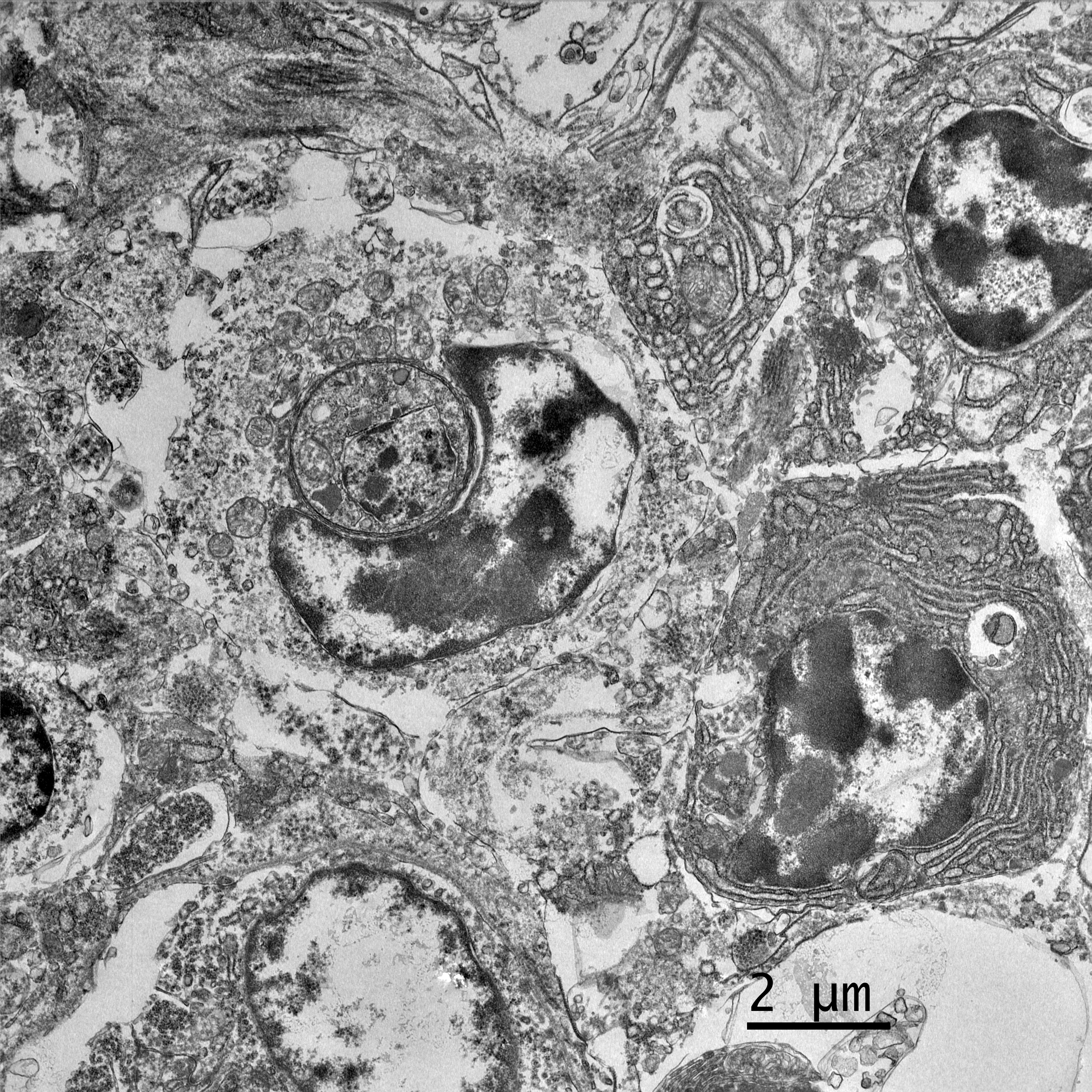 Electron microscopy, California Animal Health and Food Safety Lab in Davis, CA (formalin-fixed liver):
