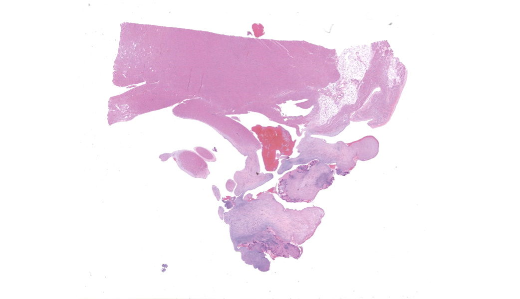 This second case provides a beautiful example of an infective endocarditis with subsequent embolic bacterial pneumonia, stimulating value-added educational discussion of a classic pathogenesis that the contributor sums up nicely in their comment. Other major points of discussion included clinical signs associated with either right or left-sided emboli and associated gross lesions with endocarditis, including those seen in acute cases where only irregular ulcerations on swollen valve leaflets may be seen instead of the more classic irregular “vegetations” on affected valves.Conference participants were again asked to recall the “YAACSS-NT” acronym of large colony-forming bacteria, which was previously spelled out in this year’s Conference 3, if a refresher is needed. (Repetition is key!) To drive home the dramatic degree of valvular expansion seen in the heart in this case, a review of valvular anatomy followed and included discussion of the normal composition of valves, which are made up of collagen, ground substance (proteoglycans and elastin fibers), and endothelium lining both sides of the valve leaflets.