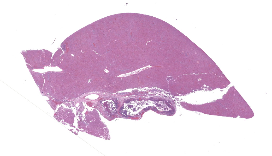 - Liver: Mild to moderate, multifocal, microvesicular steatosis
