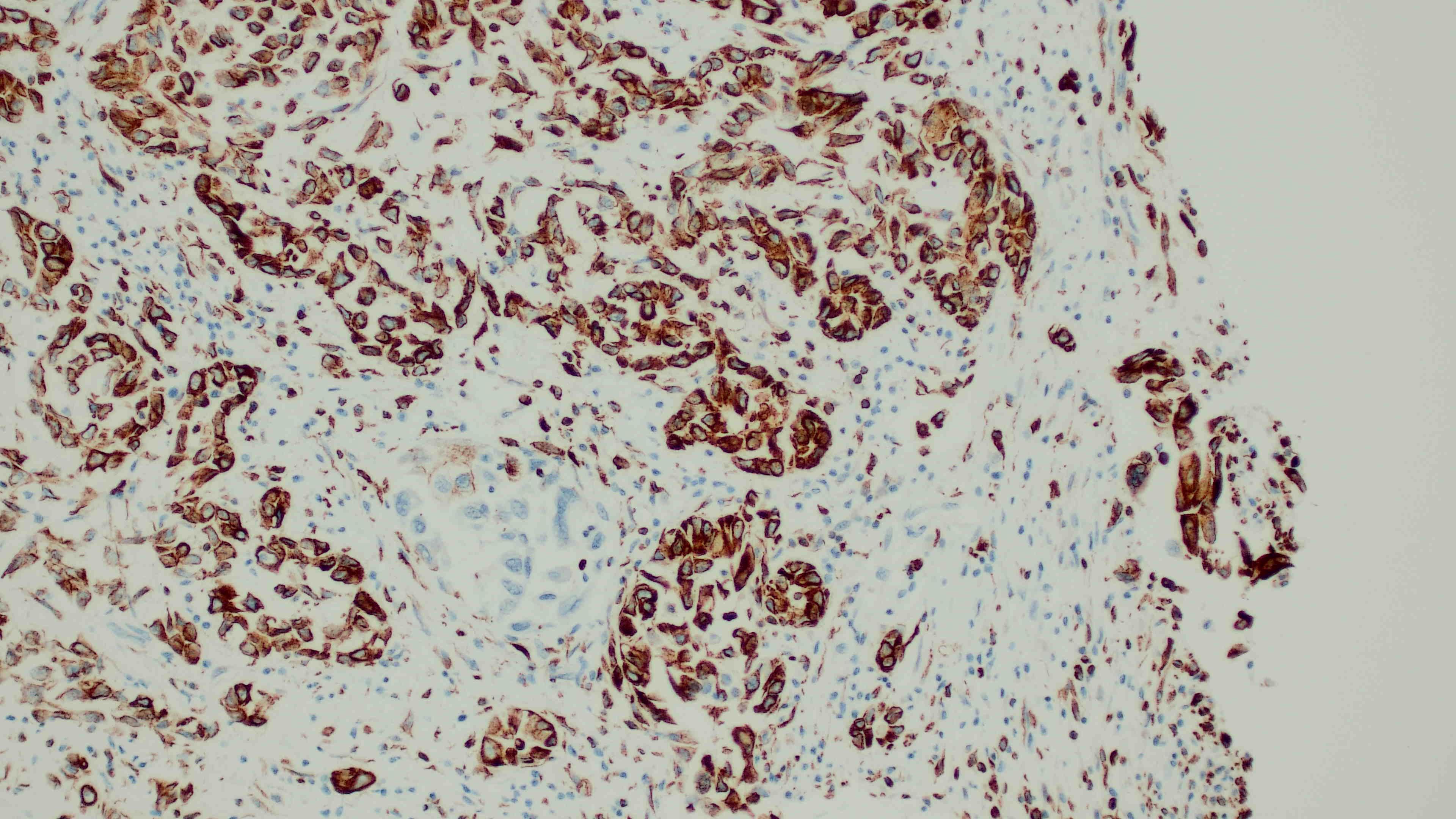 This third case was challenging due to the epithelioid nature of this mesothelioma. Most conference participants were readily able to reach a diagnosis of “carcinoma” or “adenocarcinoma” and many listed epithelioid mesothelioma as a differential. Tissue identification was challenging and only the most experienced participants felt confident calling it omentum based off the HE secttion. The features described by these participants that clued them in to “omentum” included a nodular “string of pearls” subgross appearance, the composition of a highly vascular fibroadipose tissue, and the wherewithal to remember that the omentum exists in the first place, which can be challenging in and of itself some days. The contributor provided a succinct, eloquent write-up on mesotheliomas and their classifications, which were covered during the conference discussion.